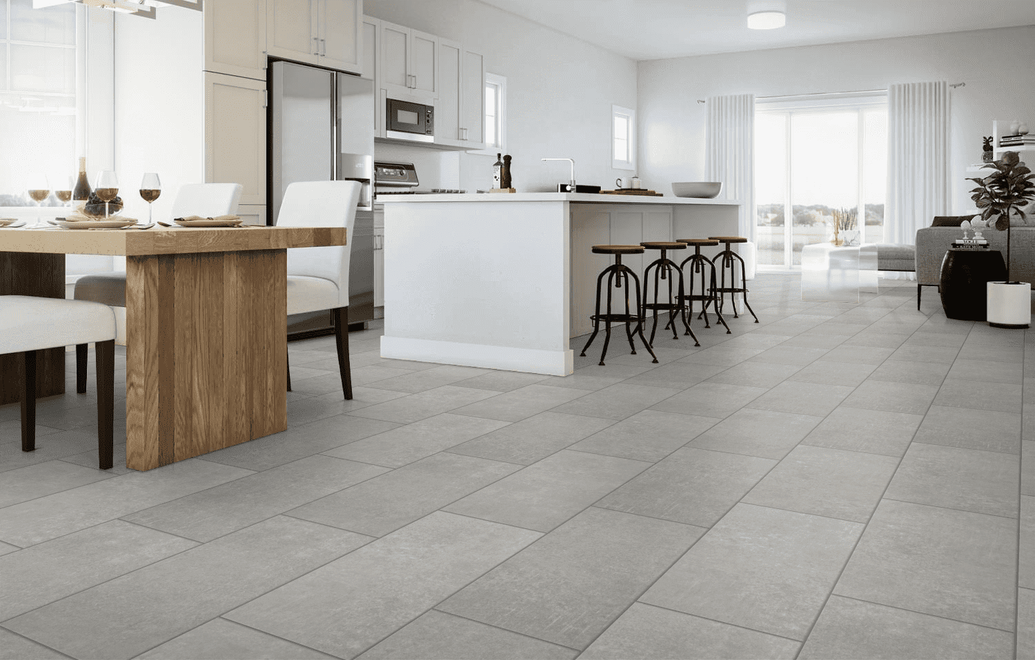 *Crafted with character, this flooring has a cross-cut scratched concrete linear pattern to create an industrial look.